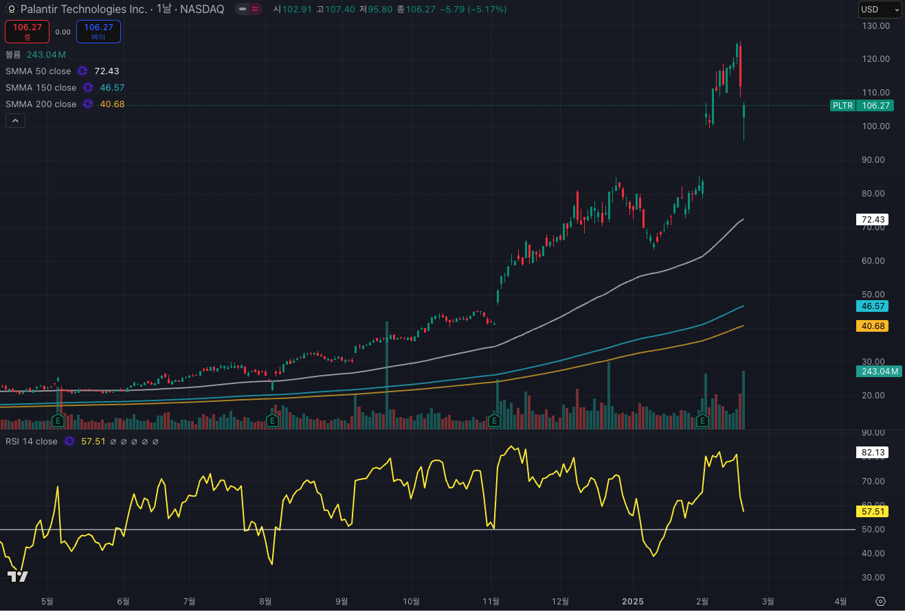 - 주가 급등: 2024년 동안 PLTR 주가는 AI 열풍과 S&P 500 편입에 힘입어 340% 상승했으며, 현재 주가는 117.39달러입니다.