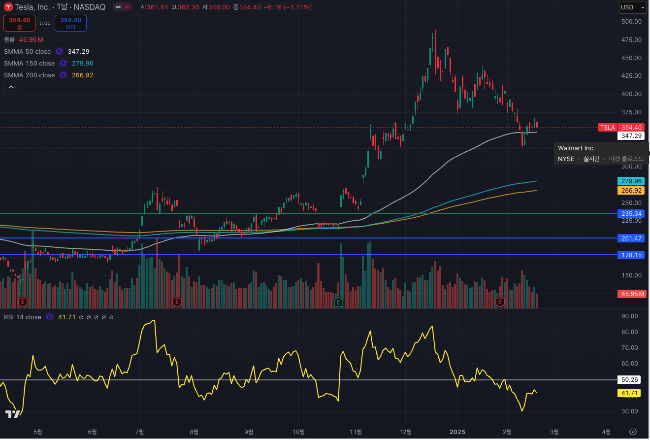- 장기: 200일 이동평균(271달러) 상회 → 황금십자형 잠재력